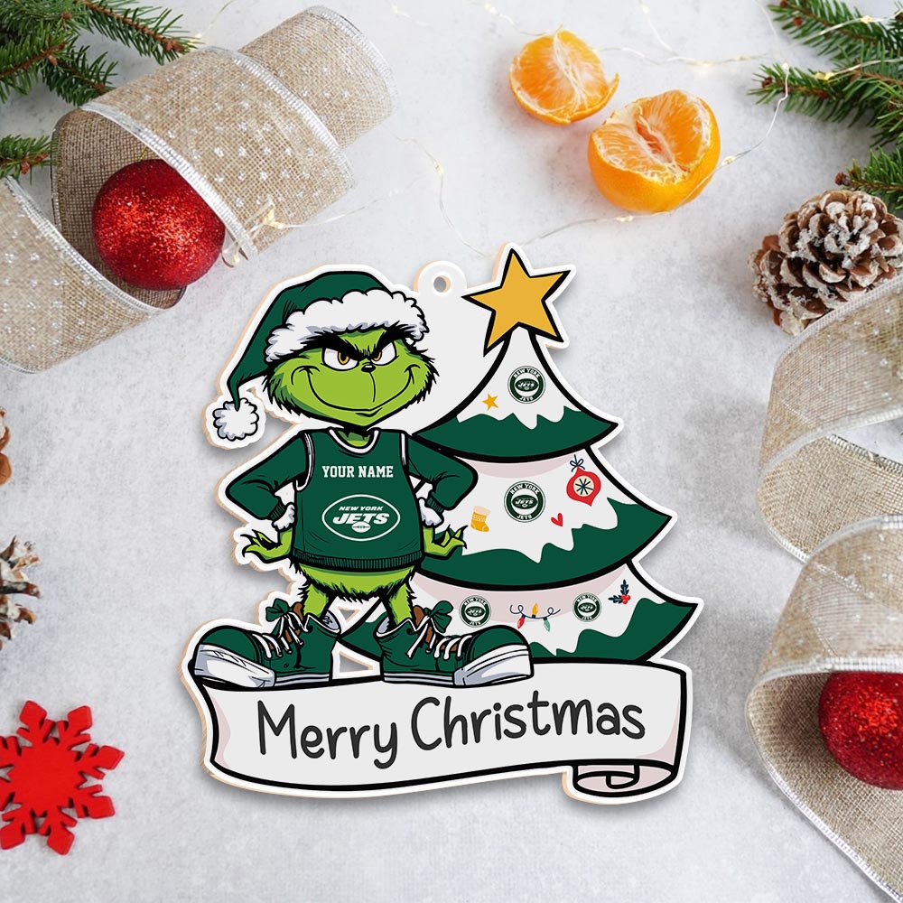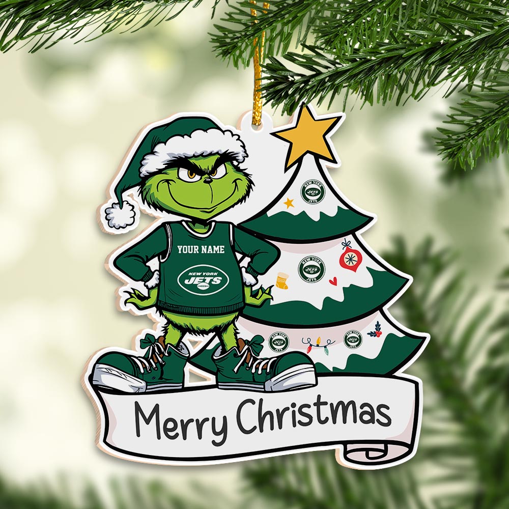 Sportswearmerch New York Jets NFL x Grinch Merry Christmas Acrylic Ornament For Fans