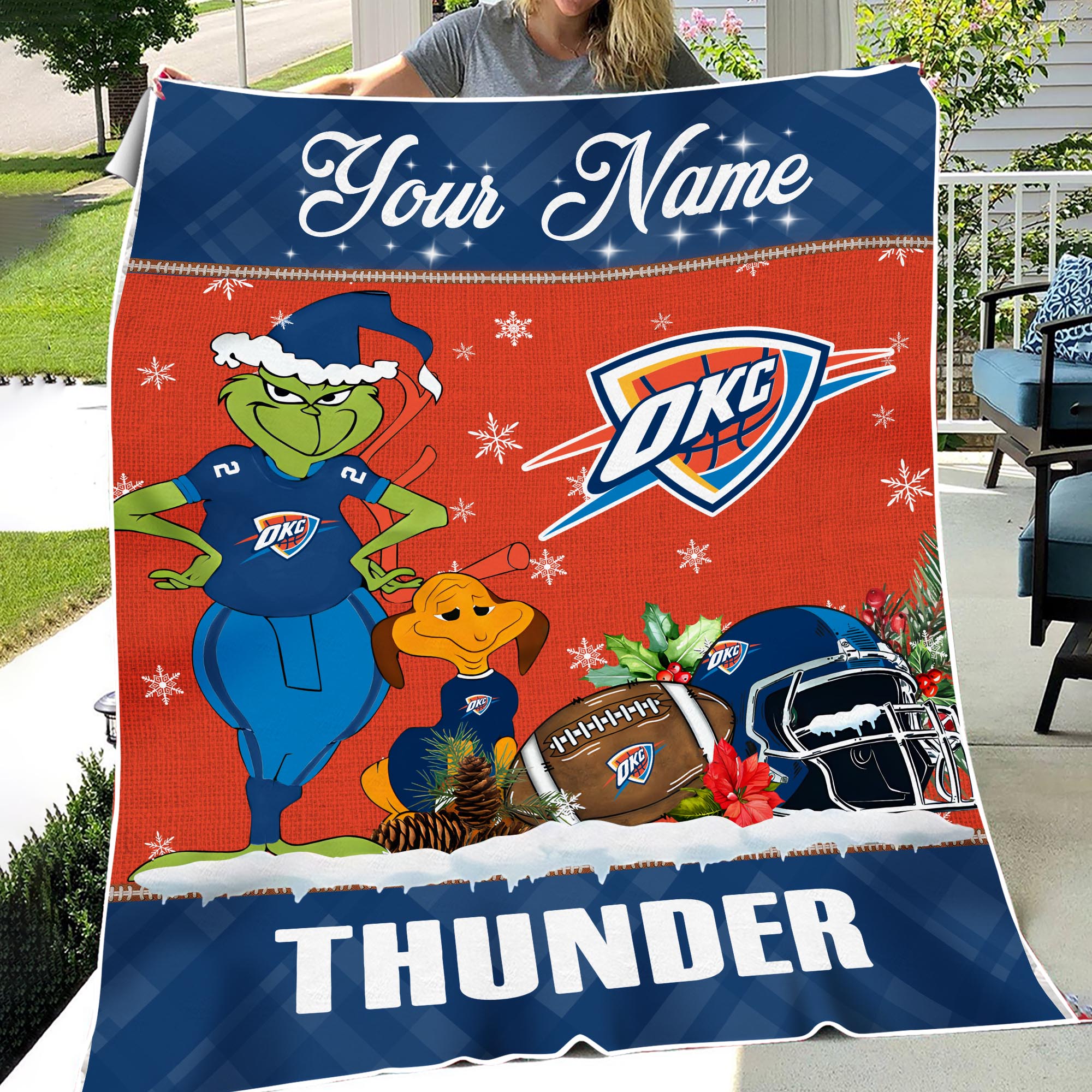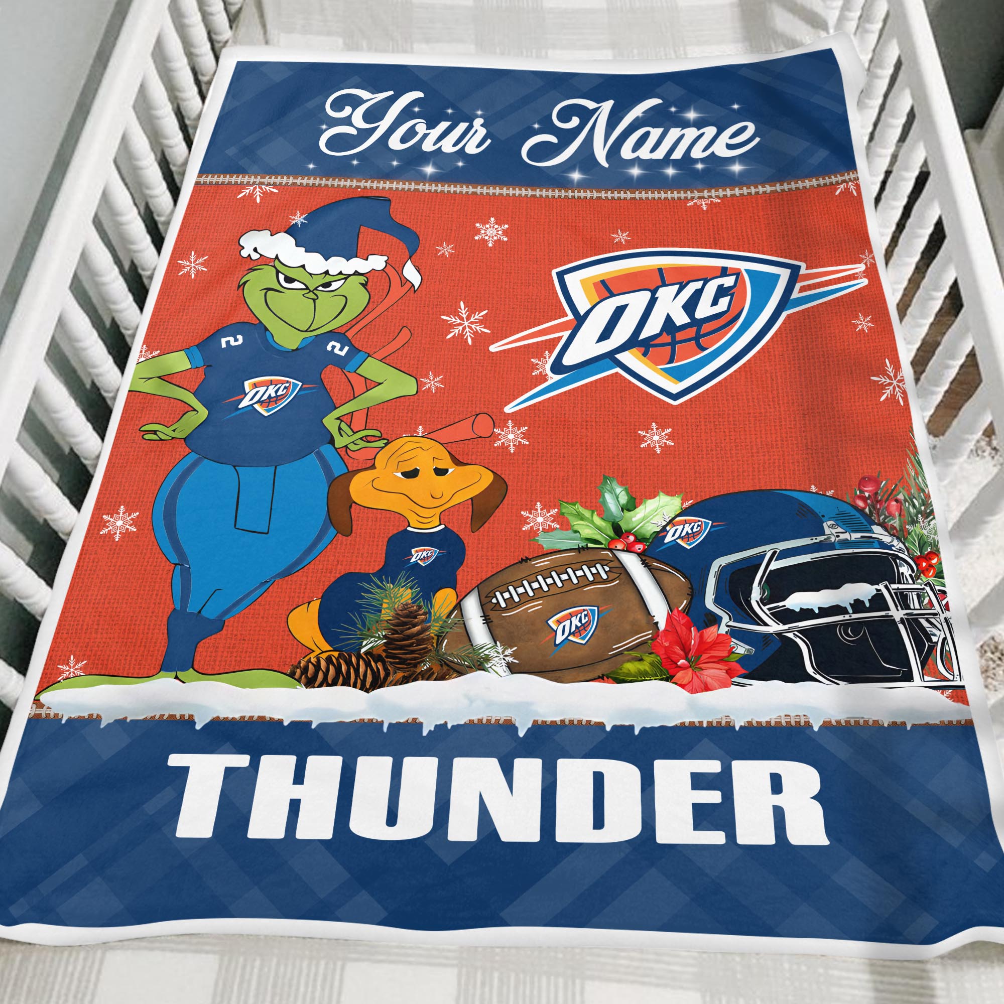 Sportswearmerch Oklahoma City Thunder NBA x Grinch Christmas Fleece Blanket For Fan