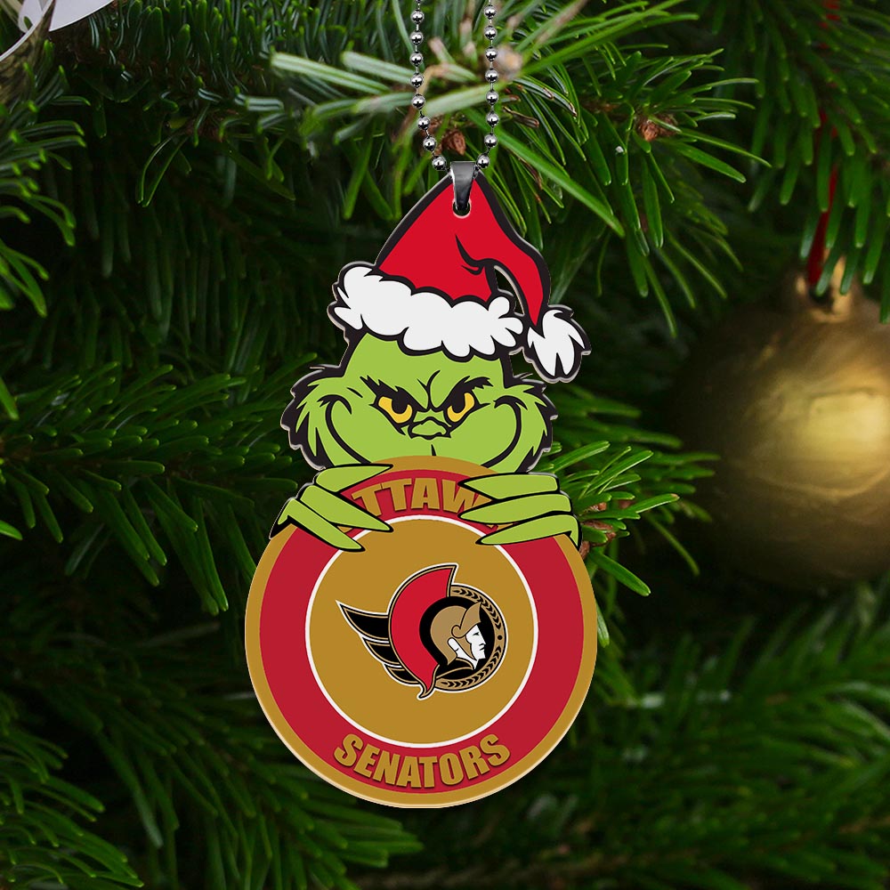 Sportswearmerch Ottawa Senators NHL x Grinch Christmas Acrylic Ornament For Fans