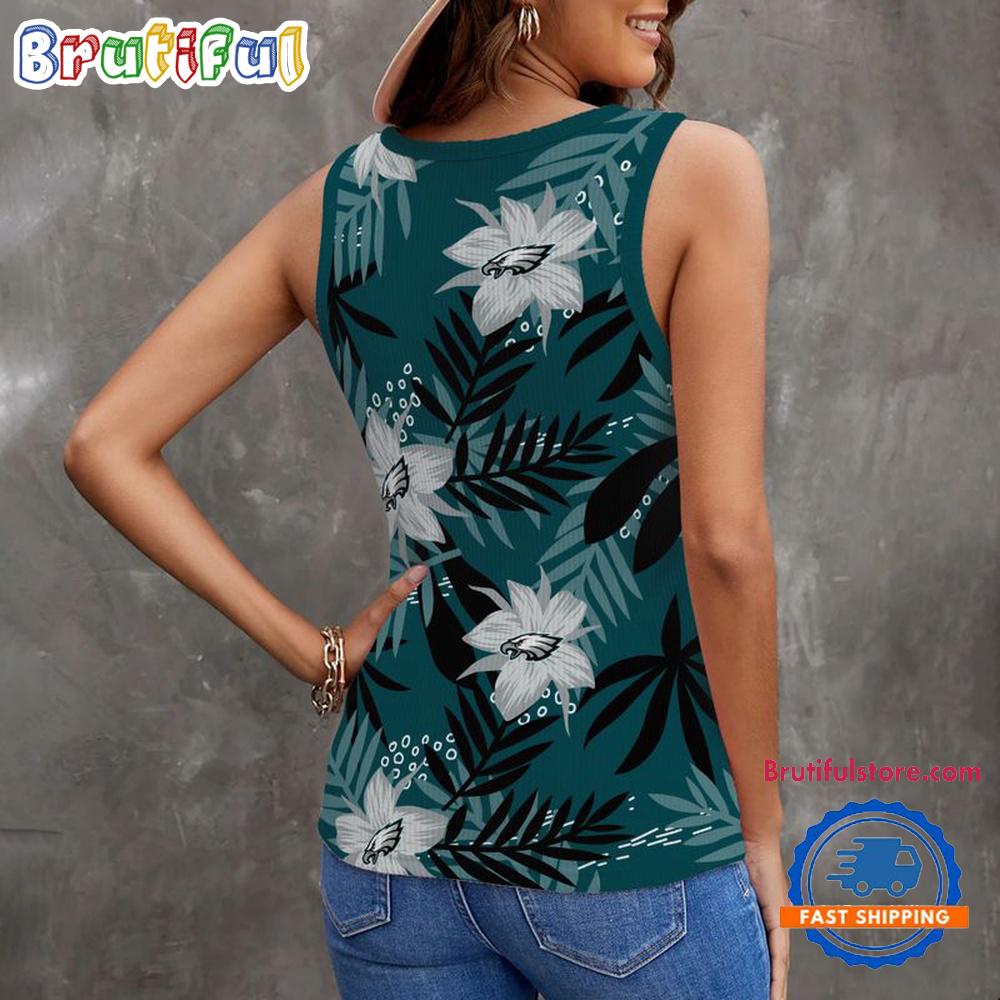 Sportswearmerch Philadelphia Eagles NFL Hibiscus Pattern Women’s V-Neck Ribbed Tank Top For Fan