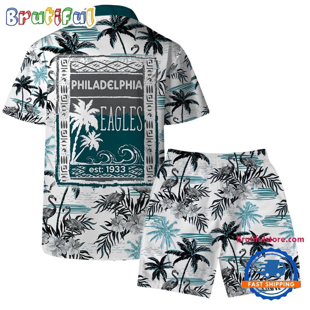 Sportswearmerch Philadelphia Eagles NFL Pattern Flamingo Hibiscus Summer Personalized Set Short Set For Fan