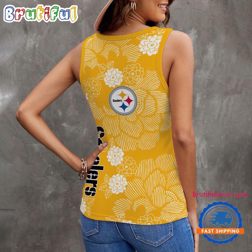 Sportswearmerch Pittsburgh Steelers NFL Flower Pattern Women’s V-Neck Ribbed Tank Top For Fan
