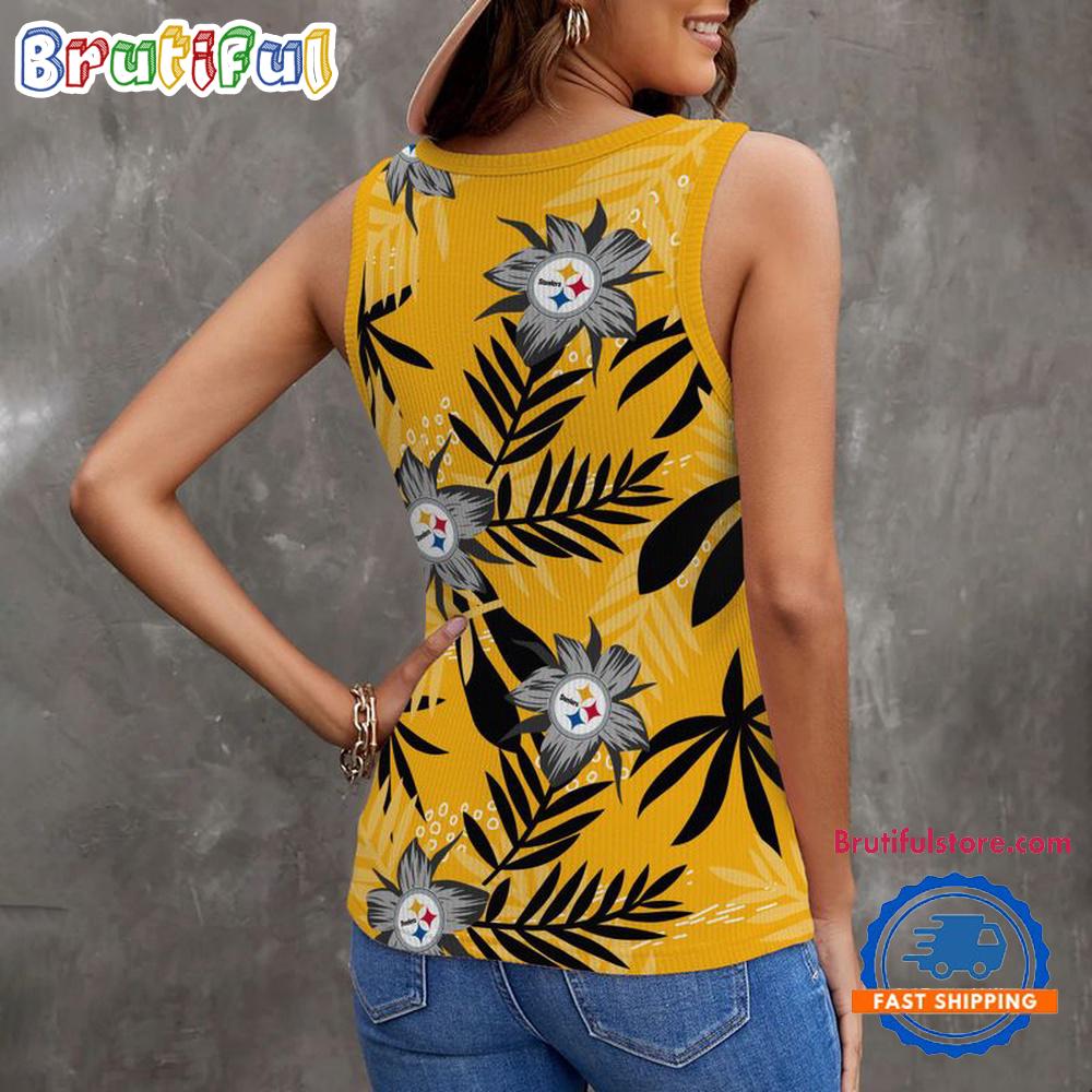 Sportswearmerch Pittsburgh Steelers NFL Hibiscus Pattern Women’s V-Neck Ribbed Tank Top For Fan