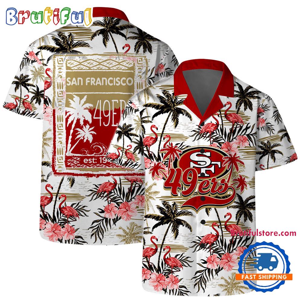 Sportswearmerch San Francisco 49ers NFL Pattern Flamingo Hibiscus Summer Personalized Set Short Set For Fan