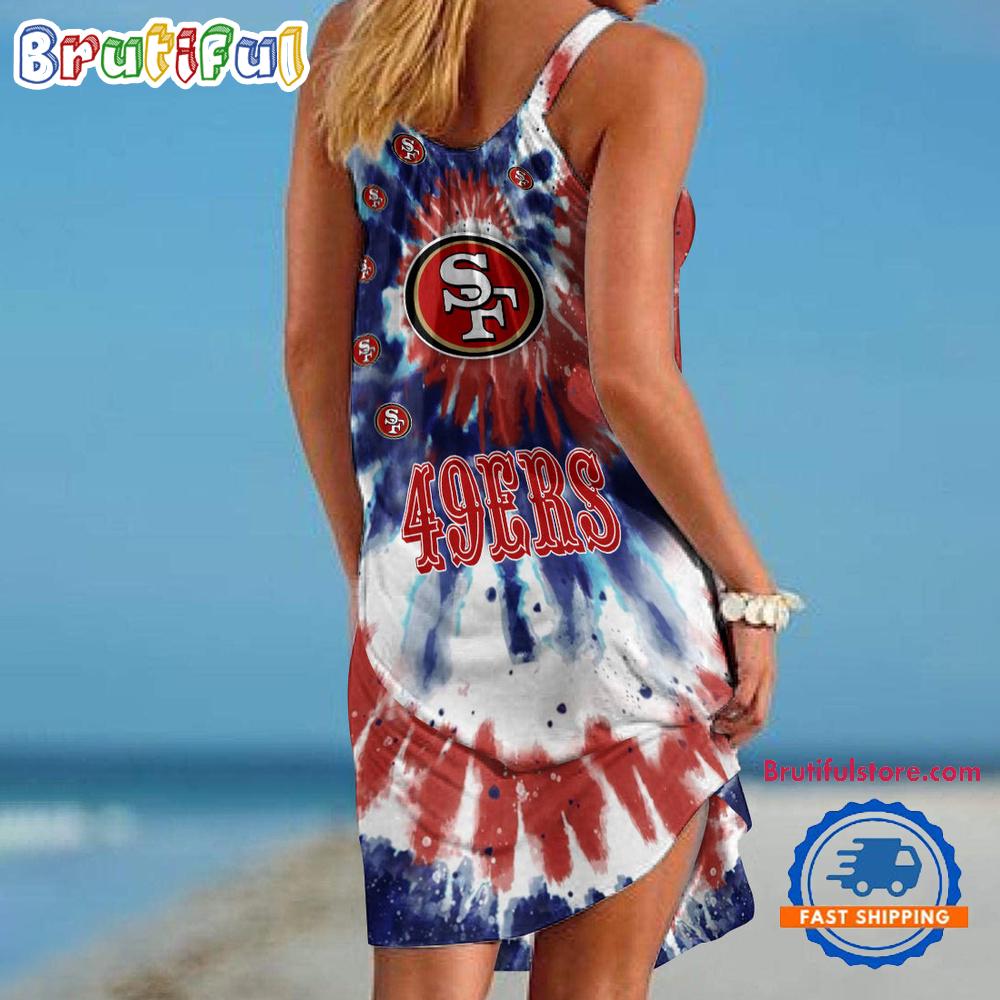 Sportswearmerch San Francisco 49ers NFL Tie Dye Independence Day Women’s Summer Beach Dress For Fan