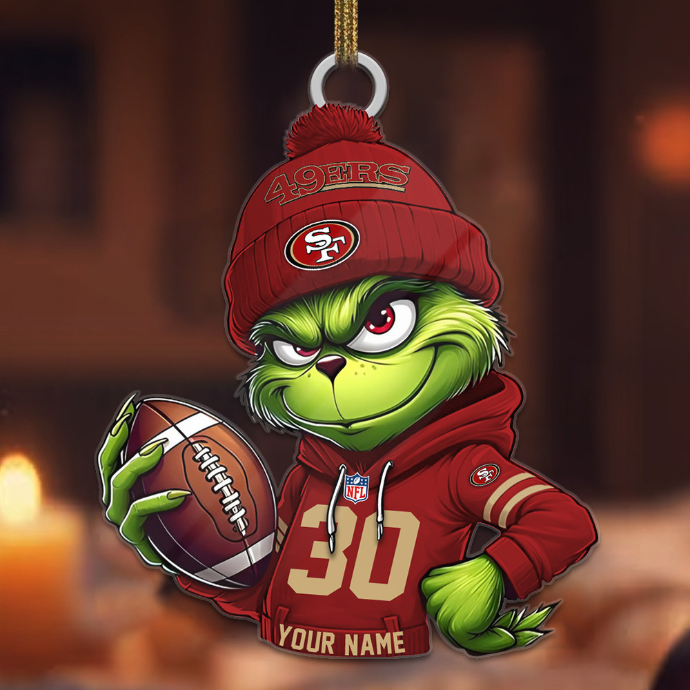 Sportswearmerch San Francisco 49ers NFL x Grinch Christmas Acrylic Ornament For Fans