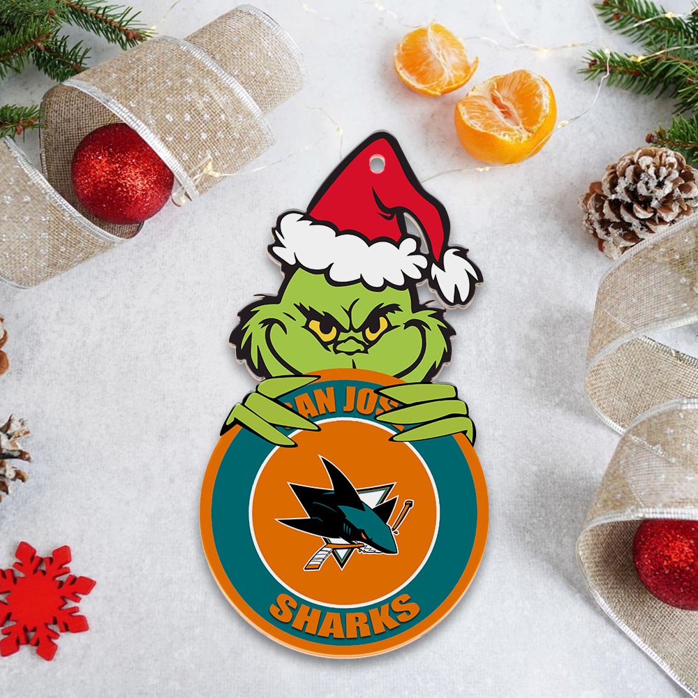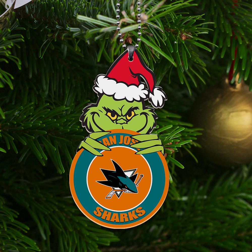 Sportswearmerch San Jose Sharks NHL x Grinch Christmas Acrylic Ornament For Fans
