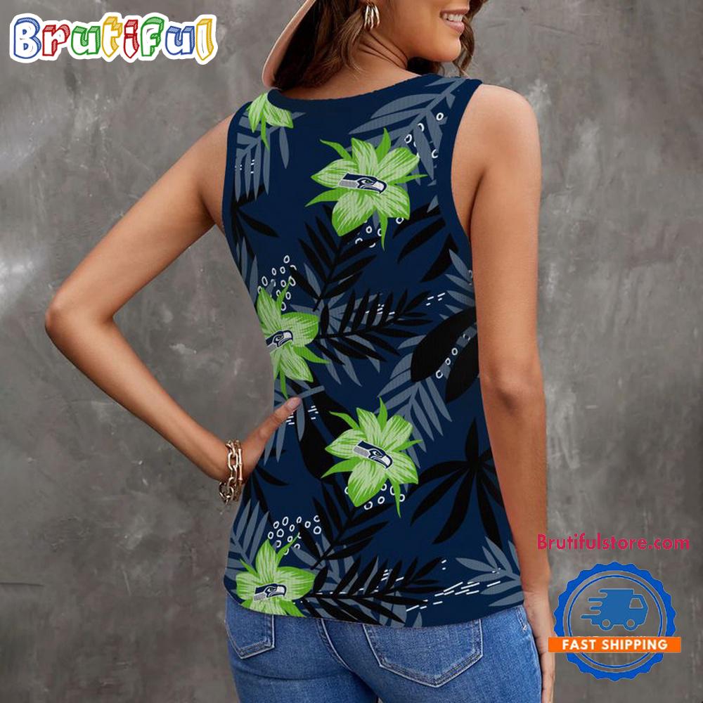 Sportswearmerch Seattle Seahawks NFL Hibiscus Pattern Women’s V-Neck Ribbed Tank Top For Fan