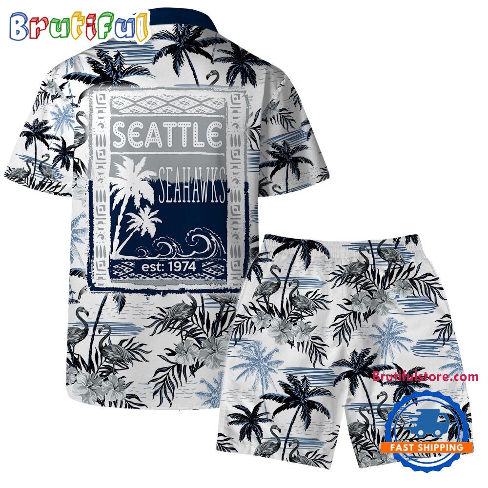 Sportswearmerch Seattle Seahawks NFL Pattern Flamingo Hibiscus Summer Personalized Set Short Set For Fan