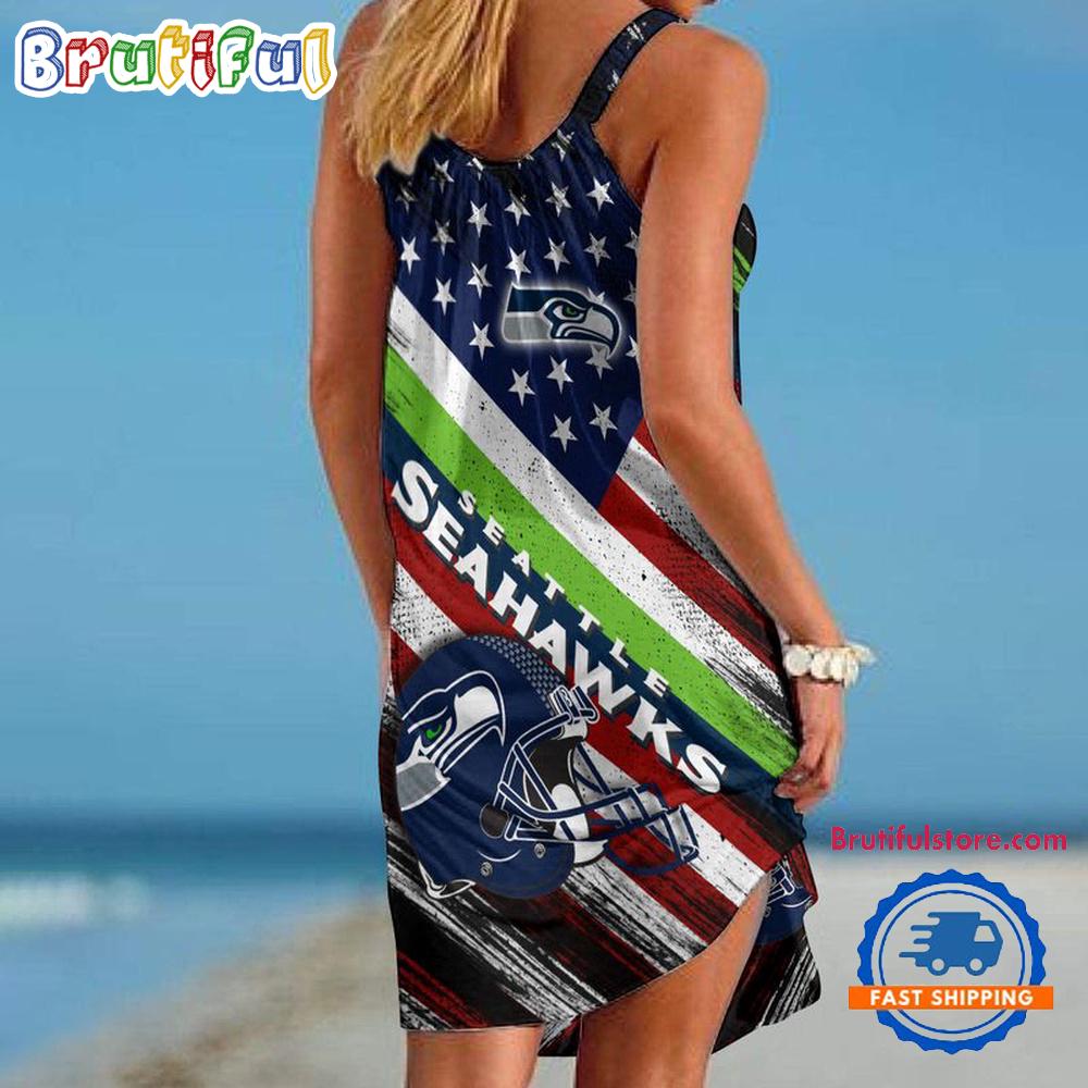 Sportswearmerch Seattle Seahawks NFL USA Independence Day Women’s Summer Beach Dress For Fan