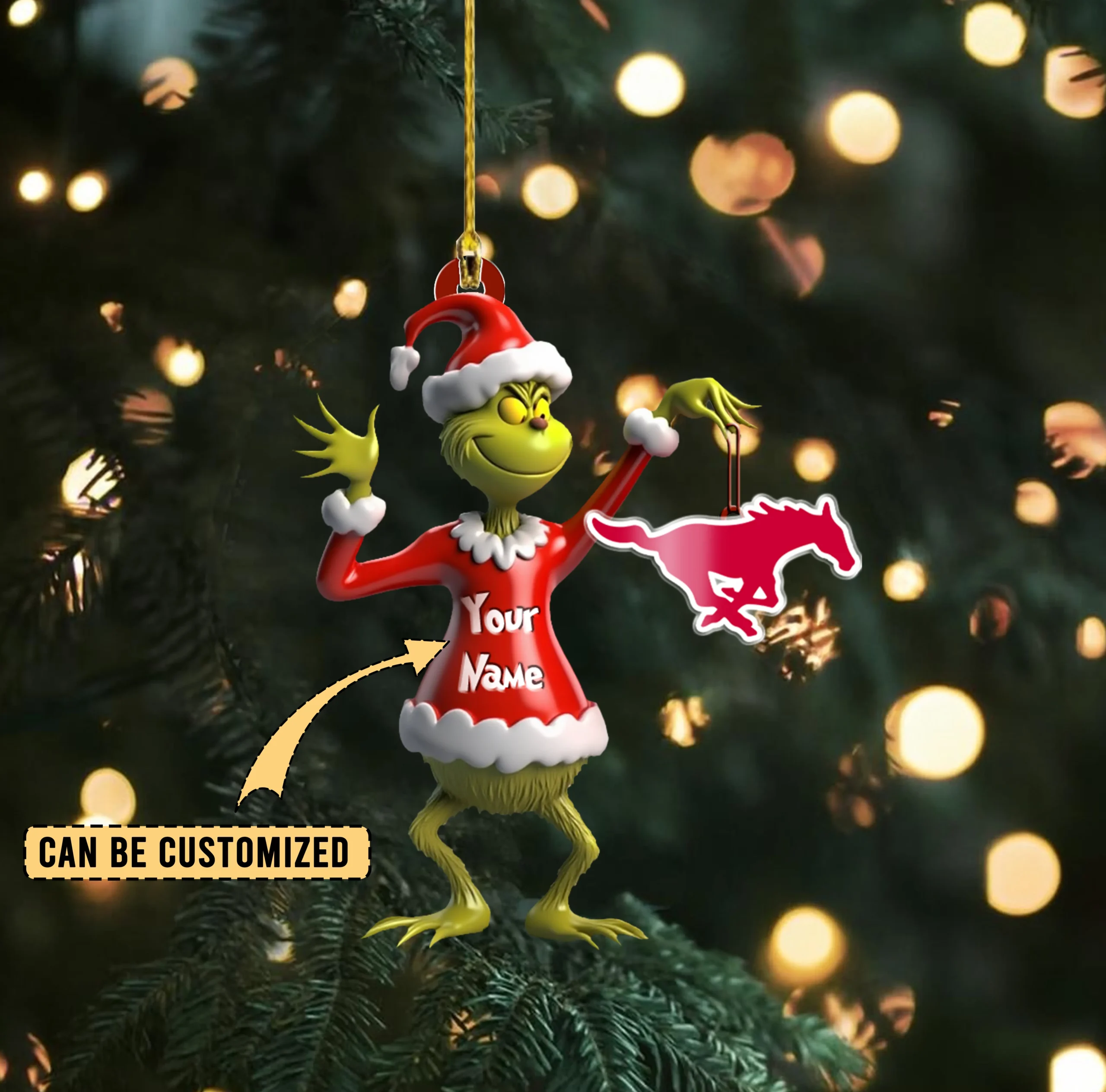 Sportswearmerch SMU Mustangs NCAA x The Grinch Acrylic Ornament Gift For Fans