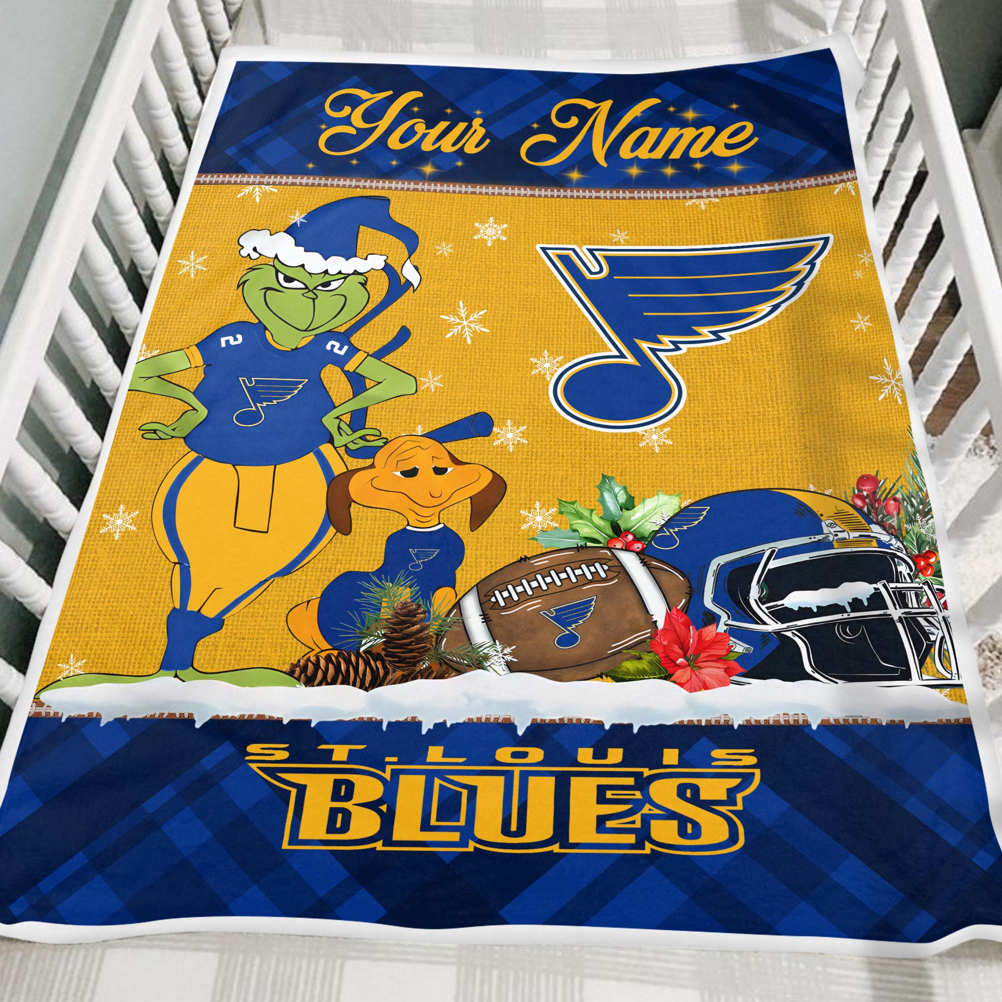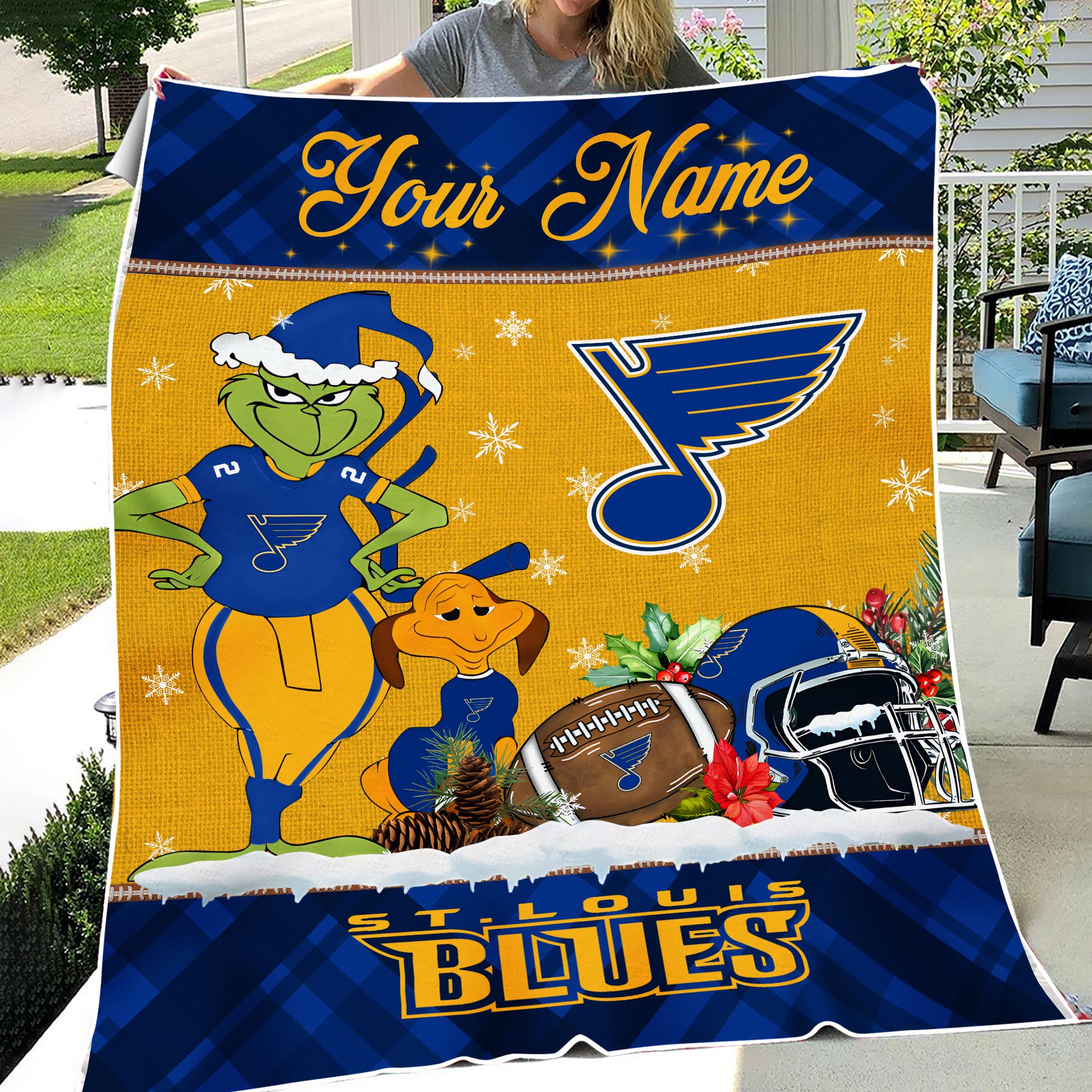 Sportswearmerch St. Louis Blues NHL x Grinch Christmas Fleece Blanket For Fan