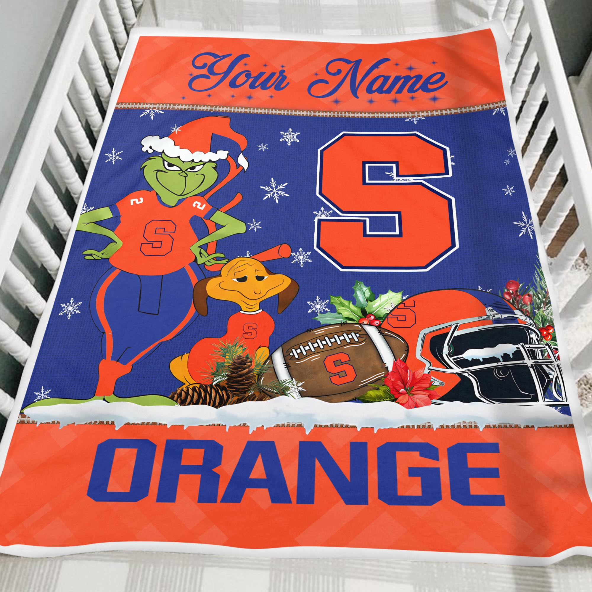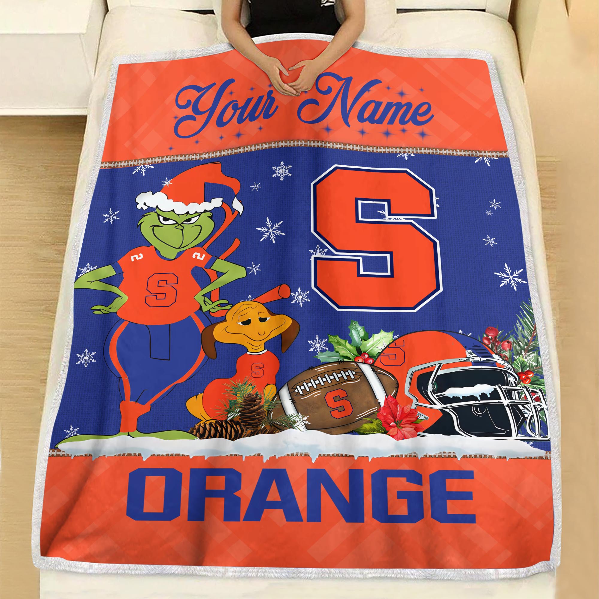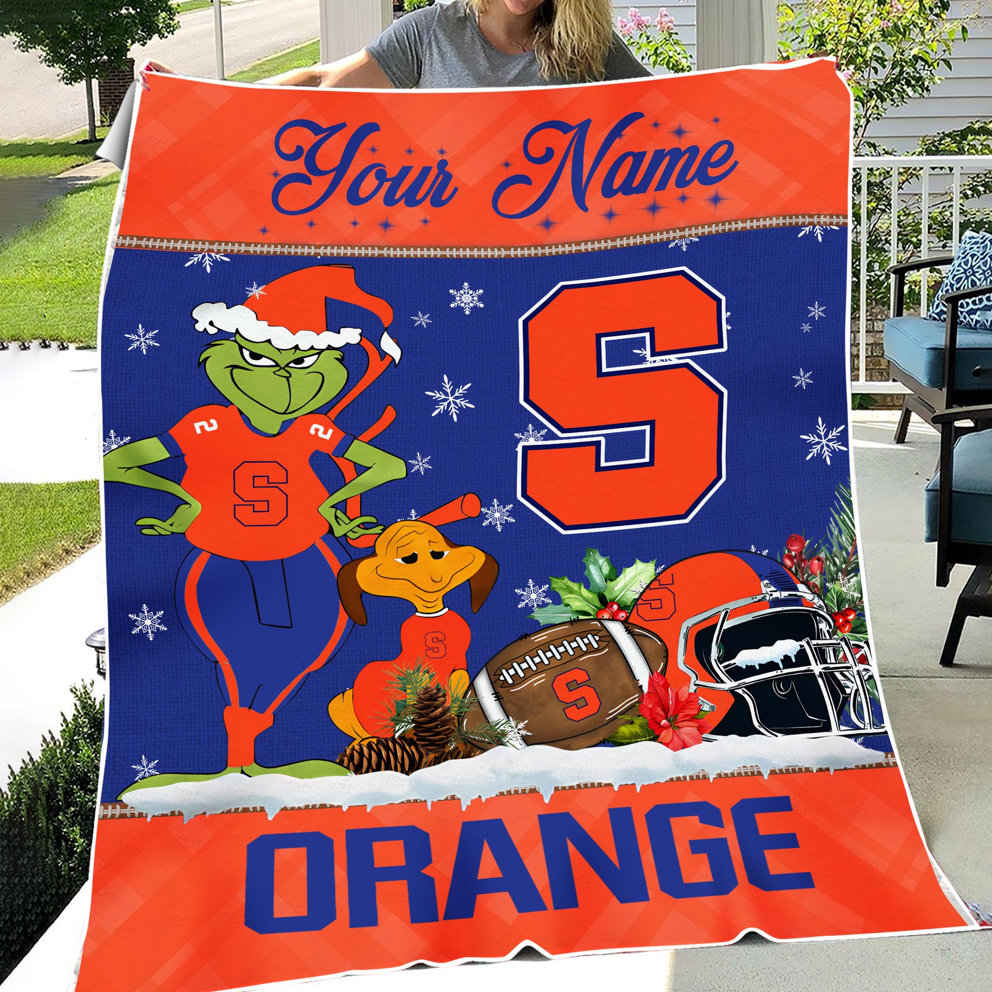 Sportswearmerch Syracuse Orange NCAA x Grinch Christmas Fleece Blanket For Fan