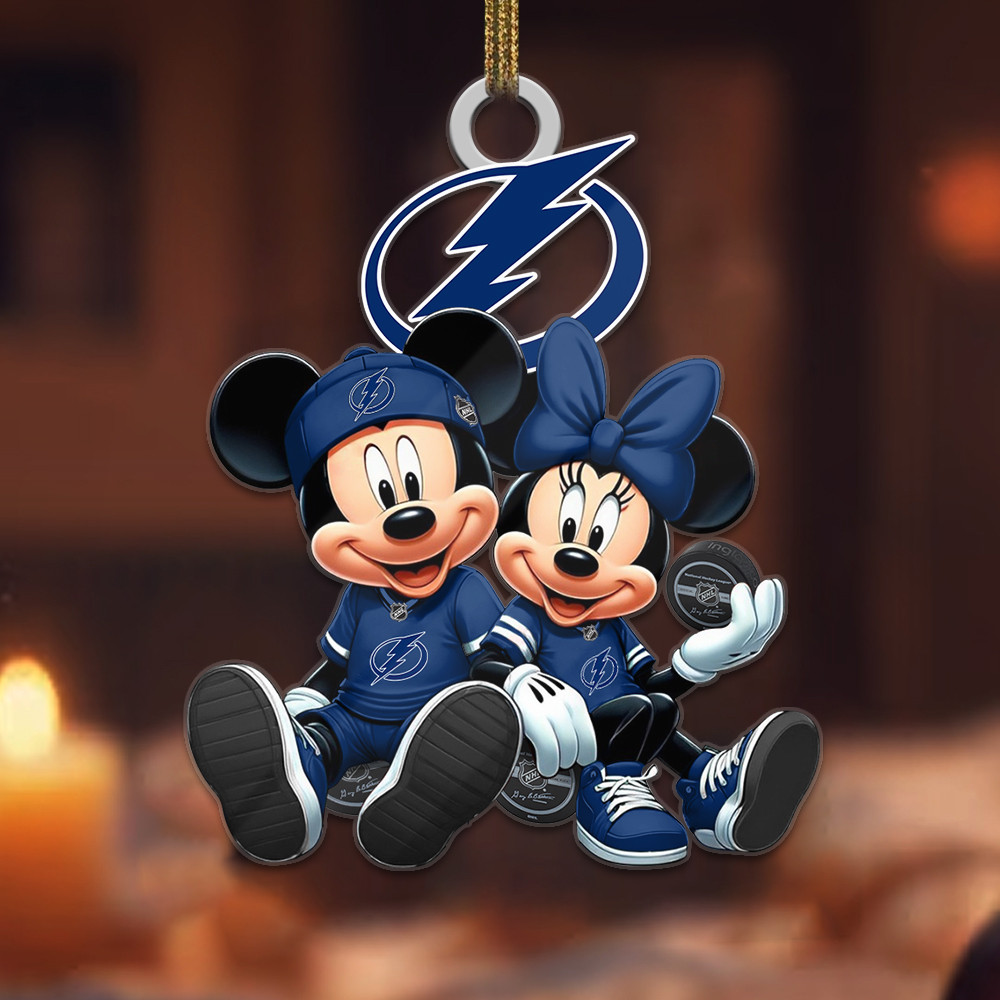 Sportswearmerch Tampa Bay Lightning NHL x Mickey and Minnie Mouse Personalized Acrylic Ornament For Fans