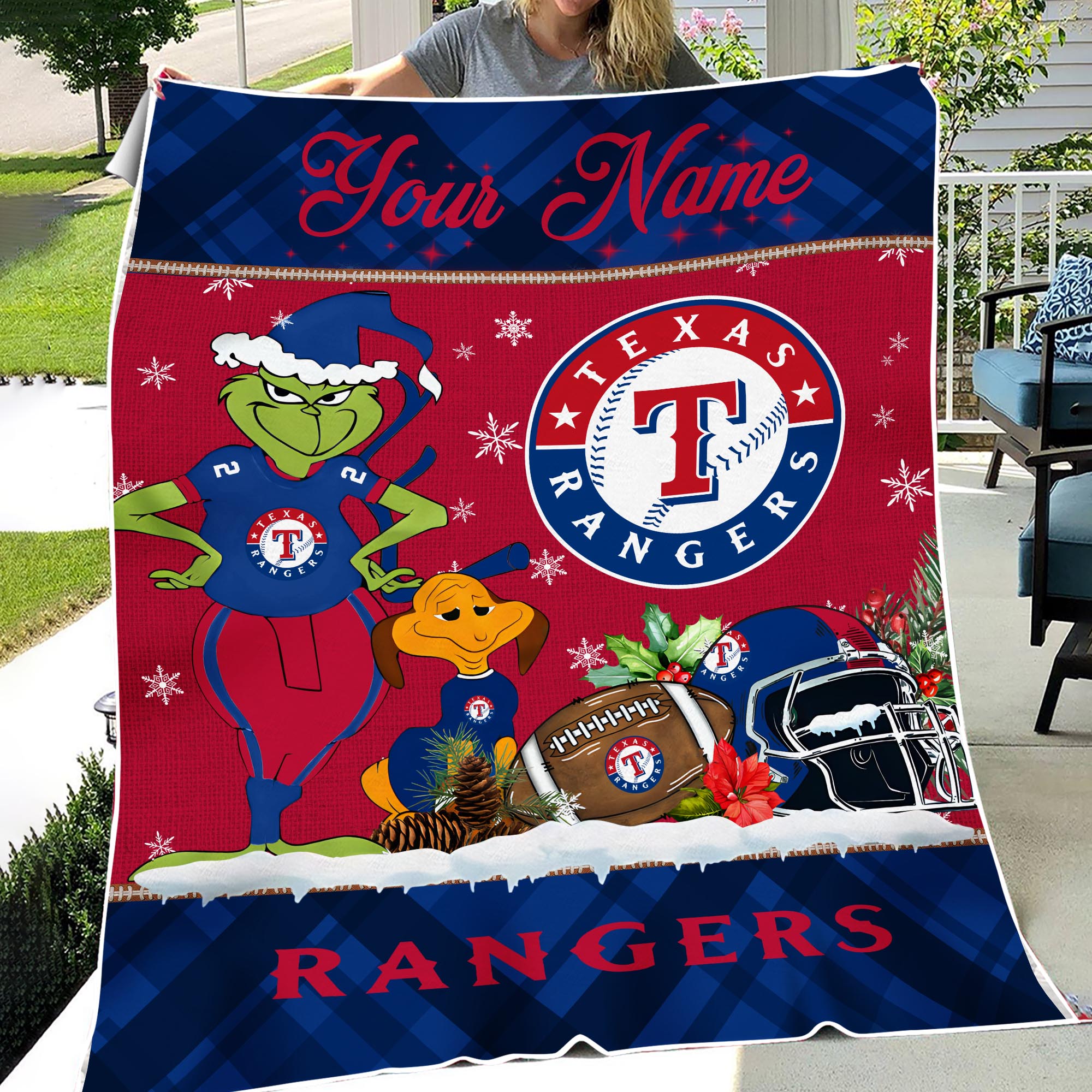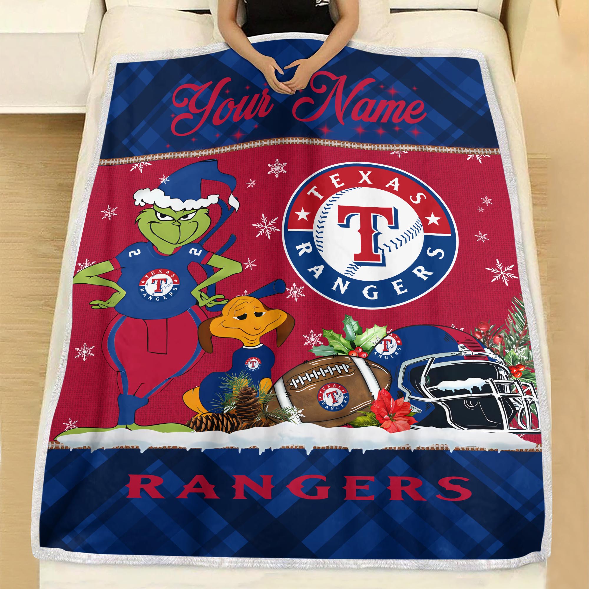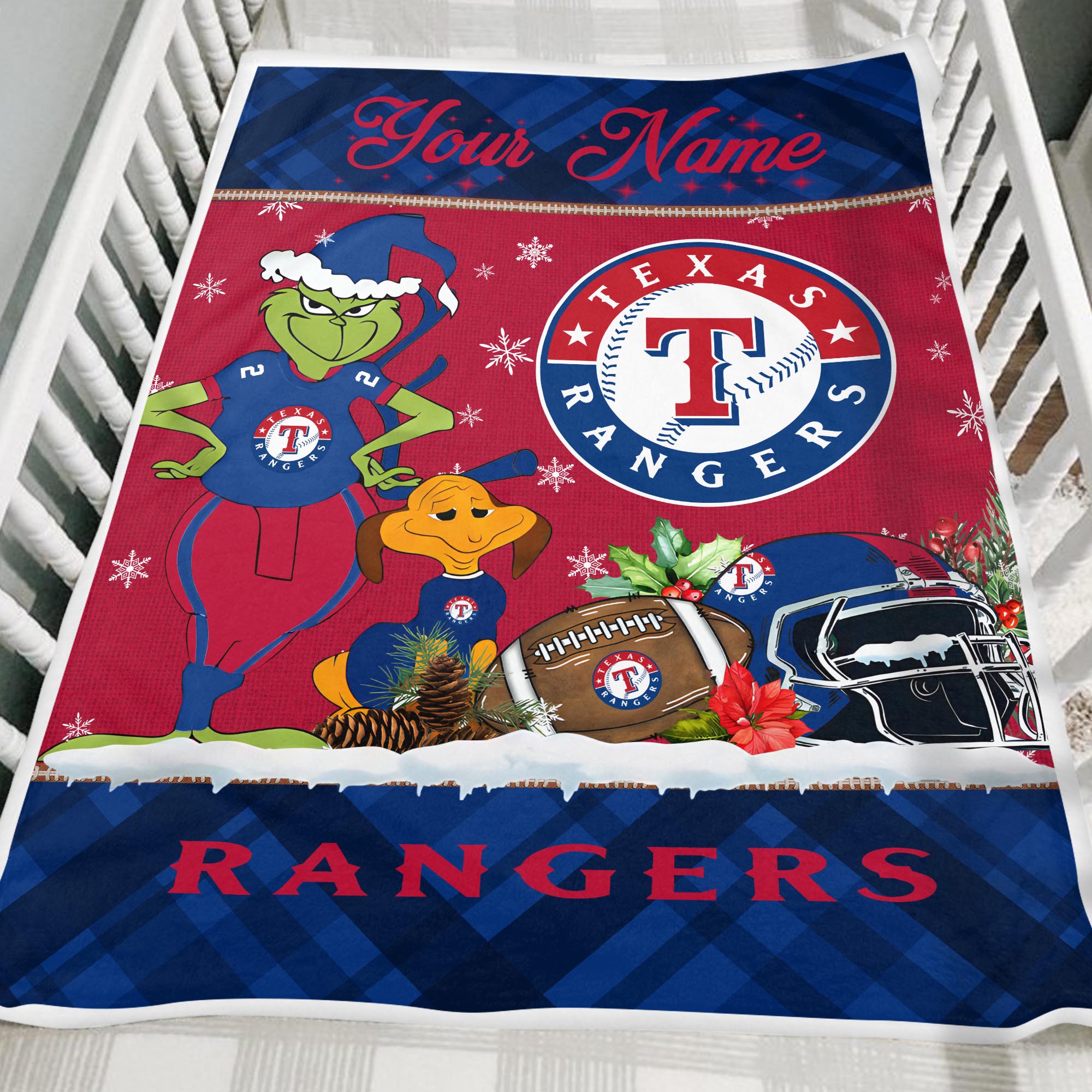 Sportswearmerch Texas Rangers MLB x Grinch Christmas Fleece Blanket For Fan