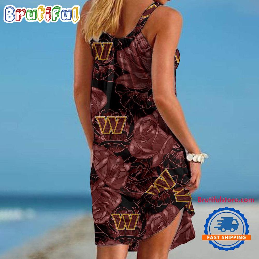 Sportswearmerch Washington Commanders NFL Flower Pattern Women’s Summer Beach Dress For Fan